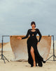 Prepare to captivate in our Nude shimmer Lycra masterpiece. This long-sleeved cut-out dress embodies opulence and daring elegance. The intricate design features a sultry cut-out that adds a touch of intrigue, balanced with a lustrous silhouette. Its asymmetric mermaid flare details create a dynamic and captivating visual effect as you move, ensuring all eyes are on you. The ruched skirt cinches at the waist, accentuating your curves with delicate precision. To complete the look, medium shoulder pads add an air of structured sophistication and an open slit in front of the skirt. This dress is a celebration of contemporary glamour, making a bold statement at any special occasion.