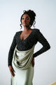 The dress is adorned with front-cover buttons, highlighting its classic yet versatile character. To complete the look, the back features the signature Olive Republic pleats, creating a dramatic flare that adds an unforgettable touch of luxury. Nadia is a harmonious fusion of classic design and modern innovation.